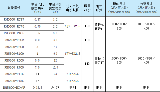 表 5-13RM5600 變風量空調智慧控制柜選型配置表